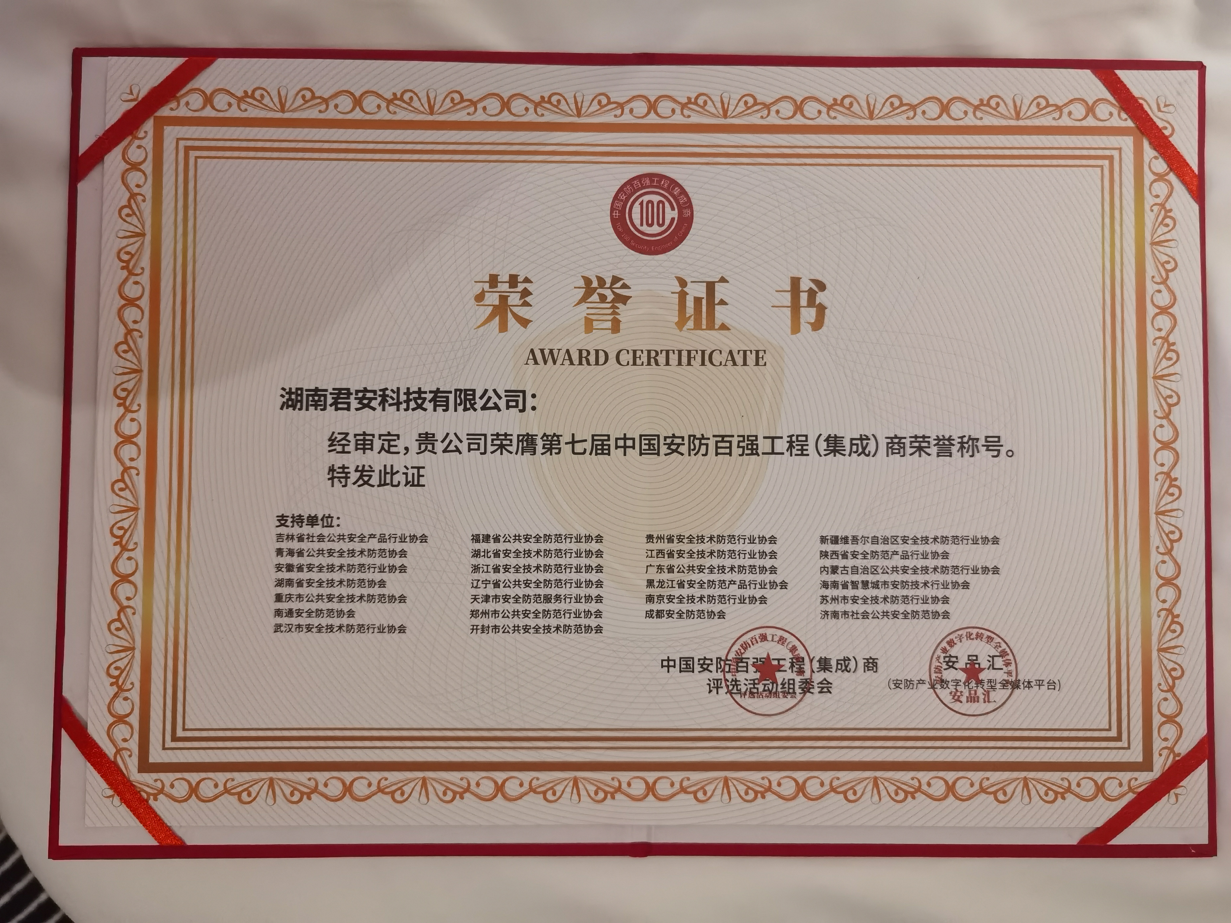 [2025/4/17]喜訊!湖南君安科技獲頒“安防百強工程(集成…